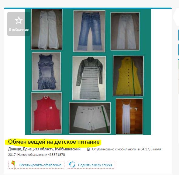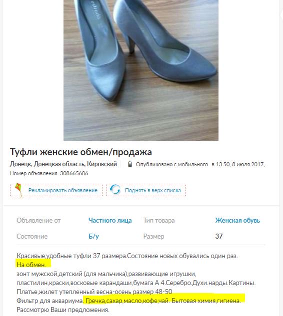 На фоне такого стремительного экономического “прорыва” некогда одного из самых богатых регионов Украины поражают объявления мирных жителей с просьбой обменять вещи на еду, передает “Диалог.UA”.