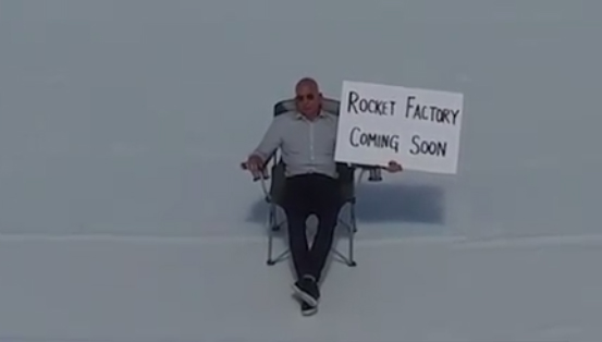 В конце видео показан сам Безос, сидящий на крыше ангара с плакатом с надписью “Фабрика по производству ракет. Скоро”.