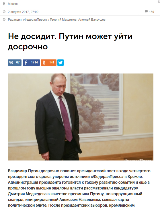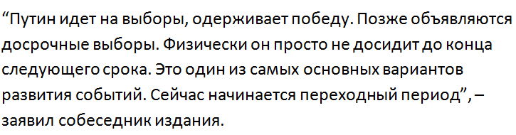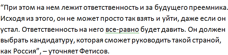 Источники “ФедералПресс” говорят, что досрочное сложение полномочий связано не только с физическим состоянием Путина, но и с его усталостью за время правления: он возложил на себя слишком большую личную ответственность.