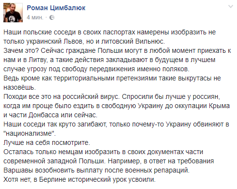 "Соседи так круто загибают, только почему-то Украину обвиняют в "национализме". Лучше на себя посмотрите", - журналист Цимбалюк жестко "прошелся" по Польше, изобразившей Львов на своих паспортах