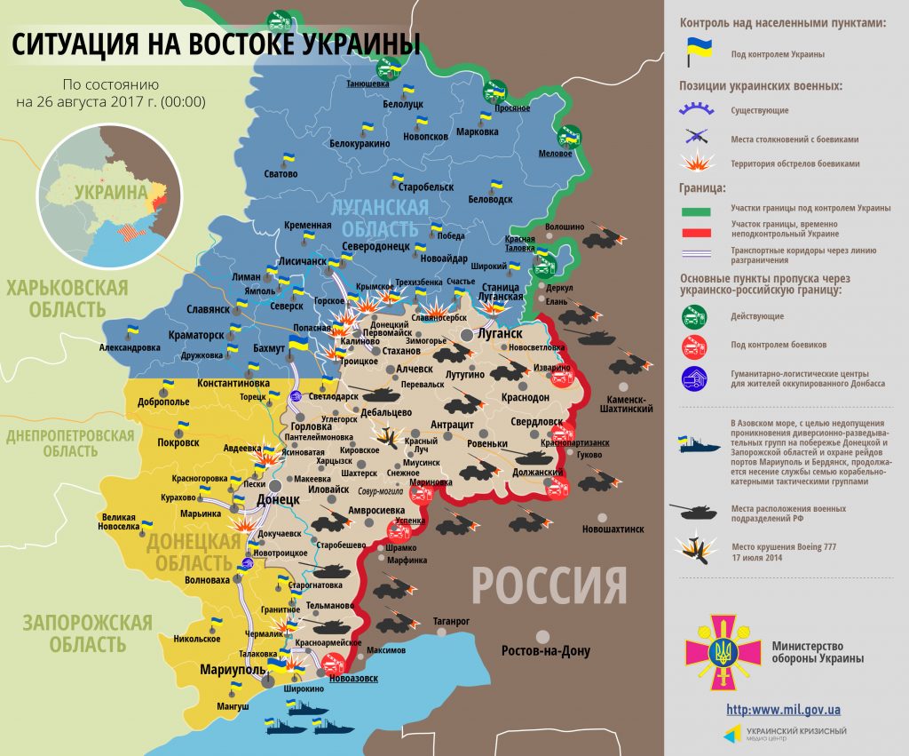 Карта АТО: расположение сил в Донбассе от 26.08.2017