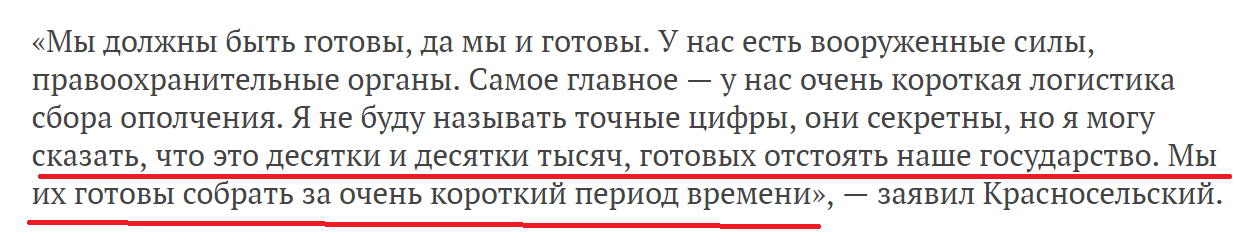 Более того, Красносельский прямо заявил, что в случае боевых действий местные сепаратисты будут поддержаны Москвой.