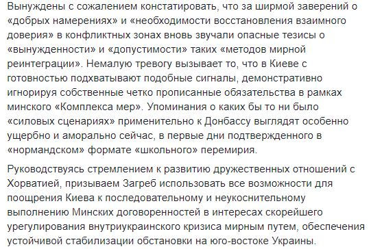 Россияне, что примечательно, в данном случае попытались запугать не Киев, а Хорватию. Они пригрозили хорватам, что в случае продолжения контактов с Киевом будут уже к ним не так дружелюбно настроены.