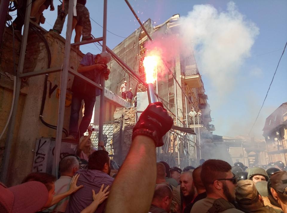 Сегодня активисты пристройку разрушили. Не помогло даже полицейское оцепление, которое пыталось остановить возмущенных одесситов.