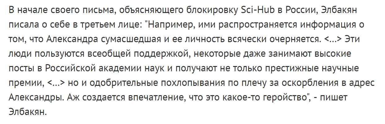 Для российских ученых заблокирован один из крупнейших в мире ресурсов Sci-Hub, на котором на данный момент опубликованы около 60 млн научных статей. Стало известно, что блокировку для пользователей из России ввела основатель ресурса Александра Элбакян.
