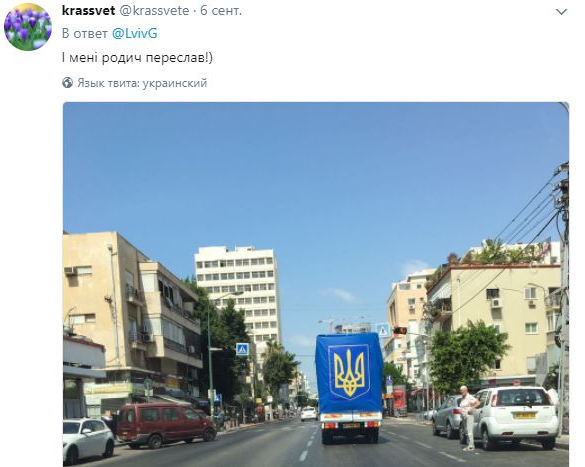На ней запечатлен грузовик с огромным гербом Украины на дороге в Израиле. Об этом сообщает "Диалог.ua".