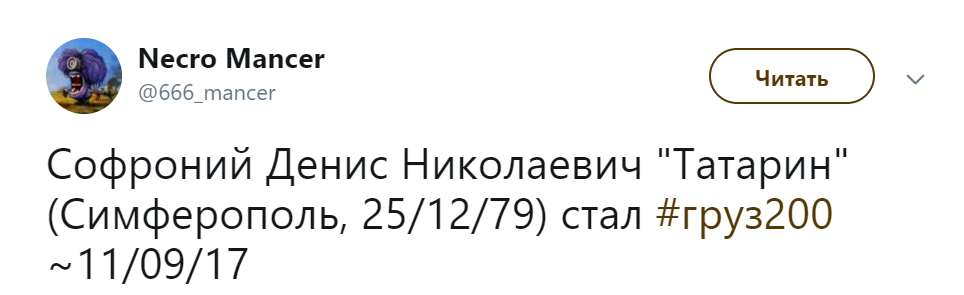 На Донбассе уничтожен пророссийский наемник из Симферополя Денис Софроний с позывным "Татарин". Он был ликвидирован в минувший понедельник, 11 сентября.