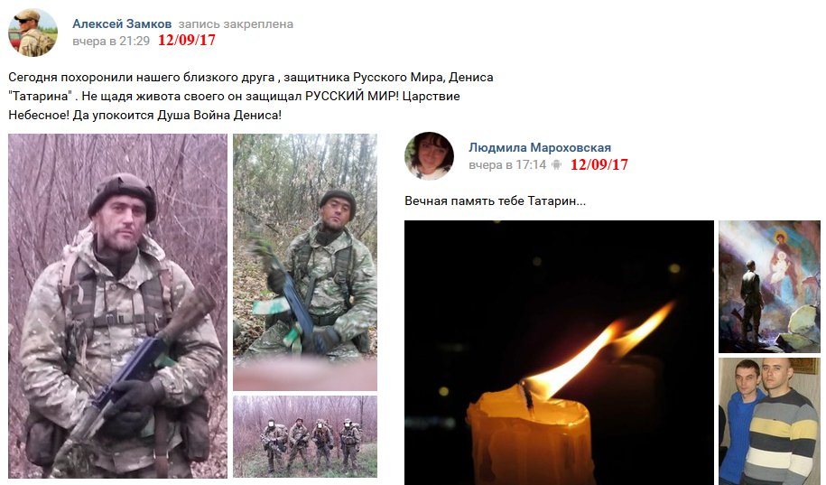 Информацию о его смерти сообщили сослуживцы террориста. Он, по их сведениям, "не щадя живота своего, защищал русский мир на Донбассе".