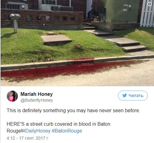 Свидетелями ужаса стали жители города Батон Руж. Как выяснилось, у ритуальщиков из-за неисправности оборудования кровь начала выливаться прямо на улицу, что создавало эффект, как будто она течет из-под земли.