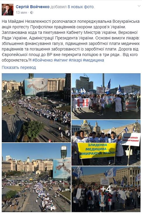 Ранее глава Минздрава Украины Ульяна Супрун показала доказательства насильственного сбора митинга врачей. Тем временем Михаил Саакашвили анонсировал акции протеста по всей Украине.