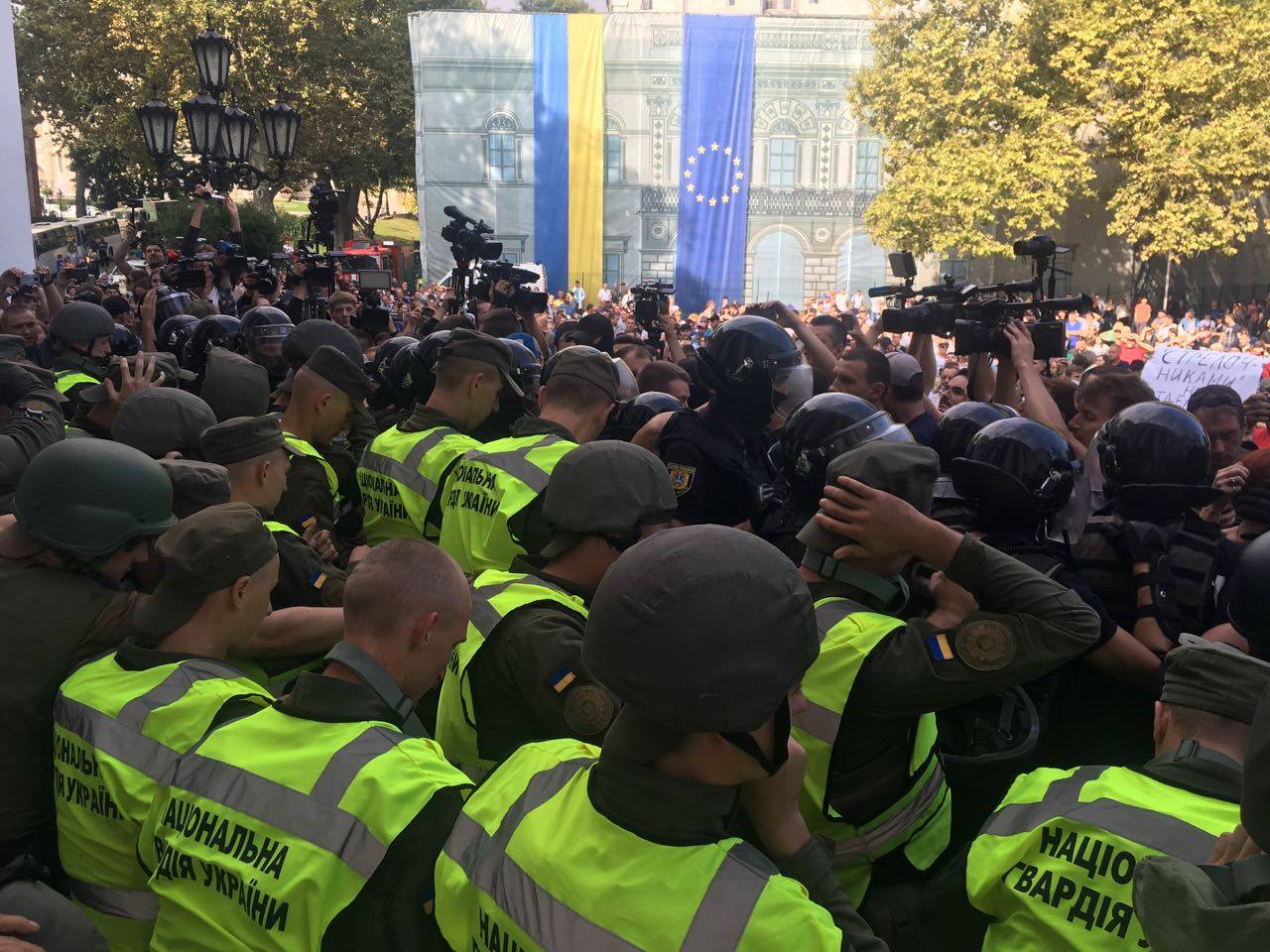 В Сети появились видеокадры массовых столкновений между митингующими и силовиками возле Одесского горсовета - обнародованы первые сведения о пострадавших