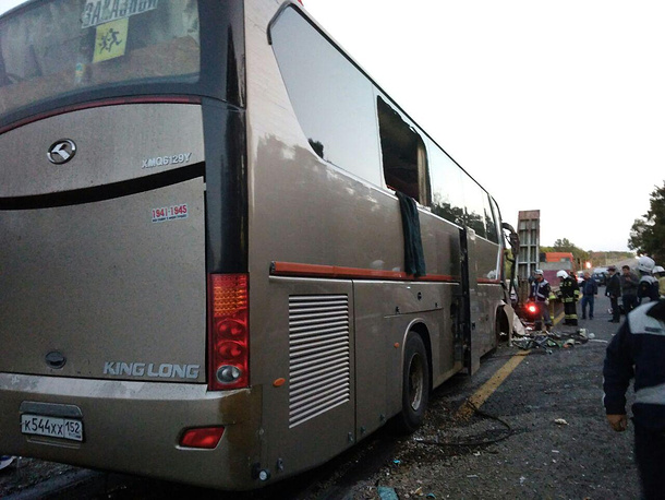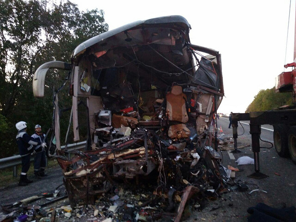 "Удар был сильный, "Тонар" только отъезжал, ехал километров 40, а автобус двигался со стороны моря. Скорее всего, водитель уснул, так как это было в 00:40, и на полном ходу догнал "Тонар". Все сиденья с пассажирами были в передней части автобуса. Водитель и экскурсовод погибли сразу", - говорится в сообщении российского ведомства.
