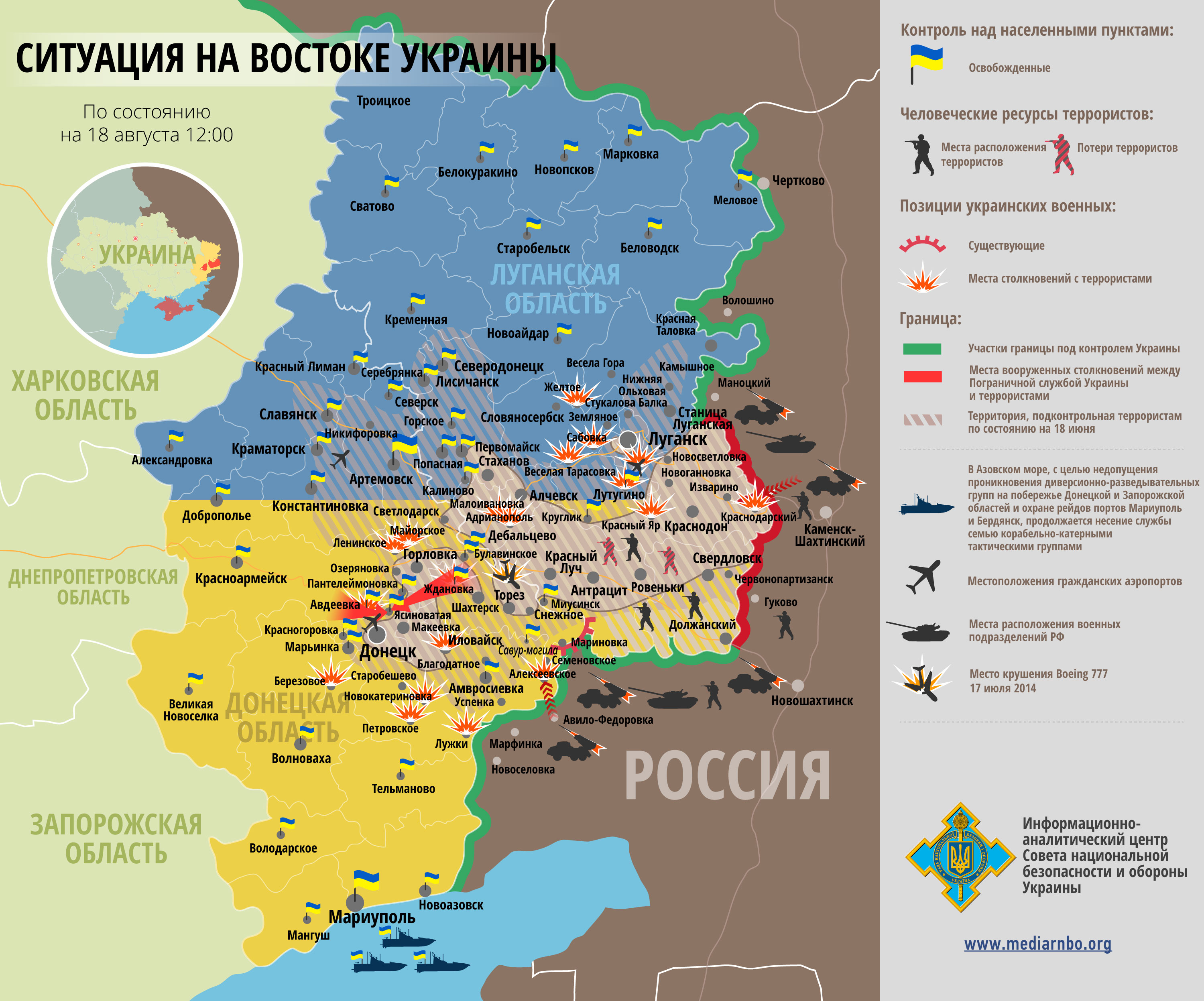 Обновленная карта АТО: Расположение сил в Донбассе от 18.08.2014