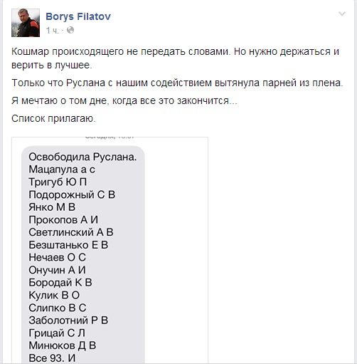Список прилагаю", - написал Филатов на своей странице в Facebook.