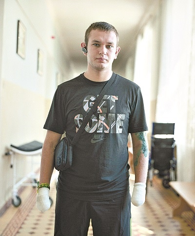 В госпиталь Лорак приехала навестить конкретного солдата — 24-летнего старшего лейтенанта Нацгвардии Олега Березовского, который в ходе боя с ополченцами на территории Славянска получил ранение от осколков гранаты и потерял кисти рук.