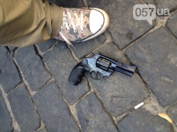Злоумышленника скрутили и повалили на землю, при этом позвонив в милицию. Орудием злодейства, по данным издания, оказался револьвер "Флобер" - по всей вероятности, предназначенный для самообороны. Из сделанной с места происшествия видеозаписи слышно, как окружающие называют указанное оружие "пукалкой".