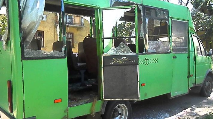 В центре Донецка снаряд попал в маршрутку и школу. Есть жертвы