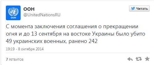 Ранее управление Верховного комиссара ООН по правам человека сообщило, что, по данным на 30 сентября, число погибших на востоке Украины составляло 3627 (с учетом погибших в авиакатастрофе малайзийского Boeing), раненых - 8446 человек.