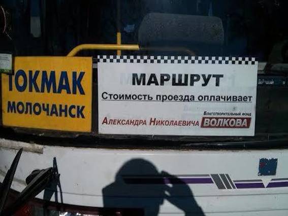 В Запорожской области кандидат в народные депутаты Александр Волков оплачивает проезд в маршрутках за счет своего благотворительного фонда.