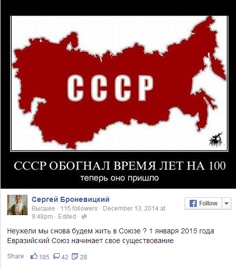«После того как на часто критикуемых мартовских выборах большинство крымчан проголосовали за признание российской аннексии, сторонники России на постсоветском пространстве требуют провести собственные аналогичные референдумы», - пишет Vocativ. Правительства некоторых стран, отмечает издание, рассматривают призывы воссоединиться с Русью-матушкой в качестве серьезной угрозы национальной стабильности и порой очень сурово наказывают сочувствующих РФ.