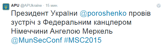Как известно, в субботу Порошенко находится в Мюнхене, где, в частности, примет участие в конференции по вопросам безопасности и проведет ряд дву- и трехсторонних встреч.