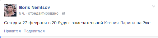 Последние посты Бориса Немцова в Facebook: о марше "Весна" и провалах Путина