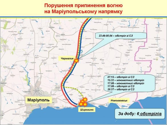 На мариупольском направлении НВФ за сутки всего 6 раз обстреляли украинские позиции – в районе населенных пунктов Чермалык, Широкино.