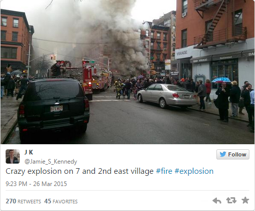 В четверг, 26 марта, в центре Нью-Йорка, на Манхэттене, в пятиэтажном жилом доме произошел взрыв.
