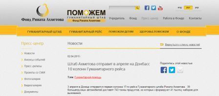 Штаб Ахметова в апреле отправит в Донбасс 10 колонн гуманитарной помощи