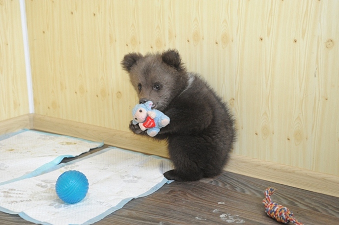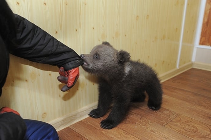 Как маленький медвежонок вообще попал к людям? Скорее всего, это проделки охотников. С 1 апреля открыт сезон охоты на медведя. Застрелили мать-медведицу, а медвежонка взяли на потеху или из жалости. Так и пошла малышка кочевать из рук в руки, пока не оказалась в гостинице для животных.