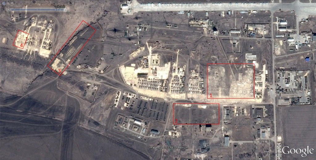 Санс указал на разницу между фотографиями авиабазы с июня 2014 и сентября того же года. На сентябрьской фотографии можно увидеть около 70 танков и БТРов, около 110 грузовиков и 60 бронированных автомобилей. Появилось также определенное количество палаток, которых раньше не было.