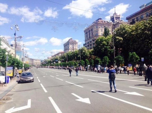 В 10 утра не менее пяти тысяч человек вышли на Крещатик, который на выходные становится пешеходной зоной, с различными лозунгами.