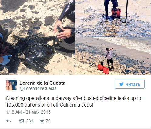 Самой крупнейшей утечкой нефти за последние 18 лет признана в Калифорнии.