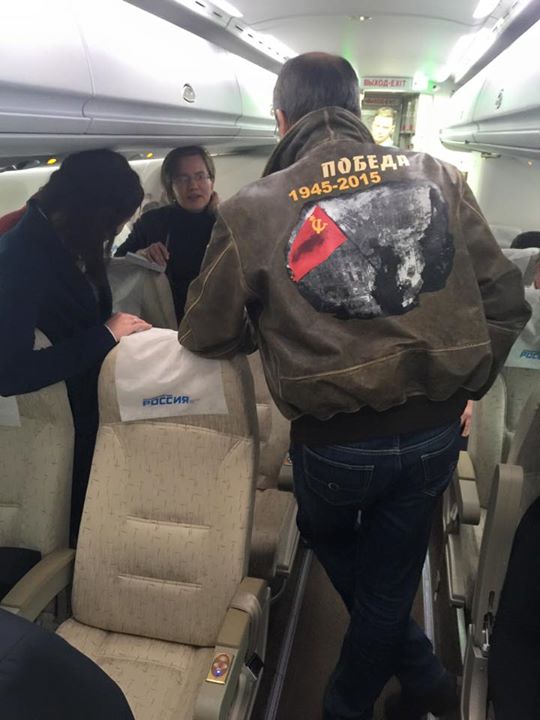 Неформальный "look" Сергея Лаврова: джинсы и кожанка с советским флагом
