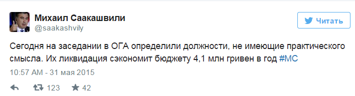 По его мнению данная процедура позволит сэкономить для бюджета области 4,1 млн гривен. Об этом Саакашвили написал в своем микроблоге.