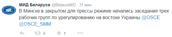 "В Минске в закрытом для прессы режиме начались заседания трех рабочих групп по урегулированию на востоке Украины. Встречаются рабочие группы по политическим вопросам, гуманитарным вопросам и вопросам безопасности", - говорится в сообщении.