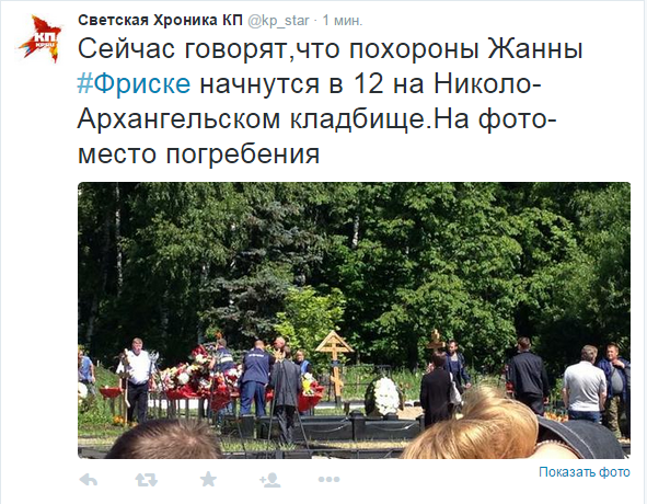 В Твиттере "КП" сообщается, что похороны начнутся 12:00 мск.