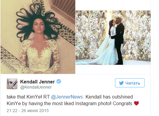 Сама Кендалл уже знает, что побила рекорд своей знаменитой сводной сестры. У себя в Твиттере она запостила поздравительную запись, опубликованную на странице фанатов.
