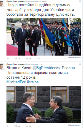 Кроме того, Порошенко подчеркнул, что ценит постоянную и надежную поддержку Болгарии в сложные для Украины времена борьбы за территориальную целостность.
