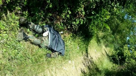 На теле убитого камуфляжная одежда. Также найдено много окровавленной одежды и бинтов, поэтому есть вероятность, что несколько бойцов тяжело ранены и им необходима срочная госпитализация.