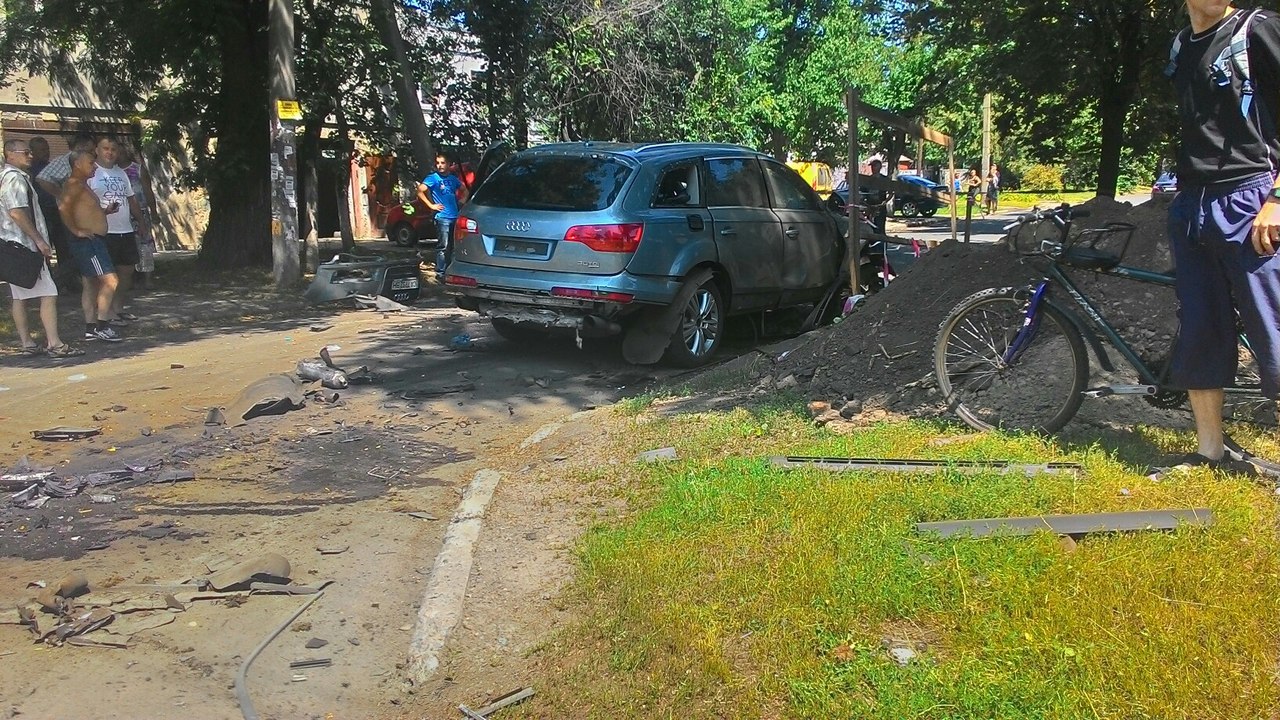По их словам, взрыв автомобиля Audi Q7 произошел возле административного здания водоканала приблизительно около 12:00.