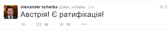 Об этом сообщил посол Украины в Австрии Александр Щерба у себя в Твиттере.