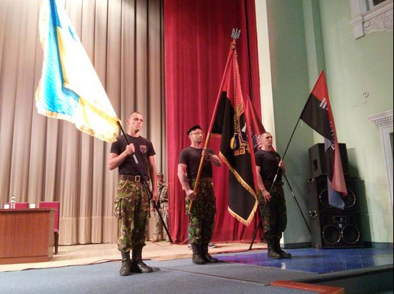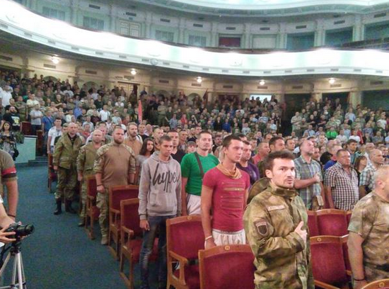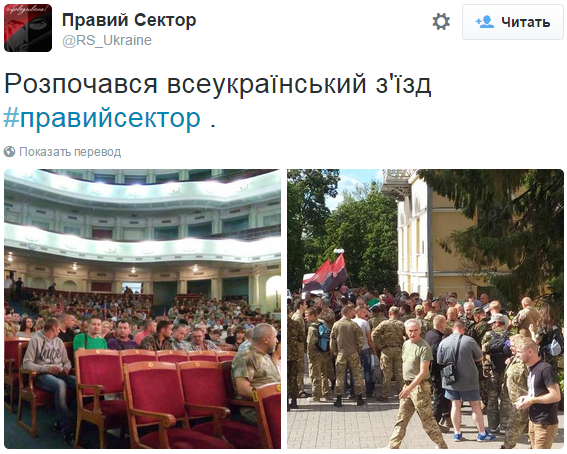 Как сообщается, собрание украинских радикалов началось с исполнения гимна Украины.