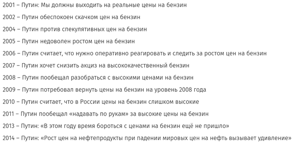 Такая последовательность в обещаниях характерна не только лидера сепаратистов. Глава Кремля также не раз пиарился на топливной теме: