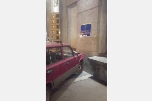 Автомобиль выехал на тротуар и протаранил здание Харьковского городского совета, который находится на площади Конституции.