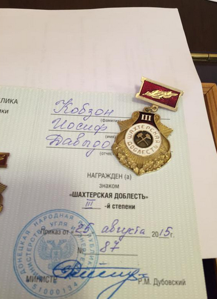 "Кобзона за песни наградили Почетным знаком ДНР "Шахтерская доблесть". Давыдыч искренне обрадовался", - написал он.