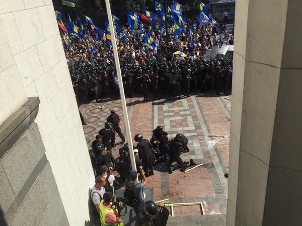 После побоища под стенами Верховной Радой Украины в Киеве многие политики переложили ответственность за большое количество пострадавших на действующую власть, в частности, на президента Украины Петра Порошенко.