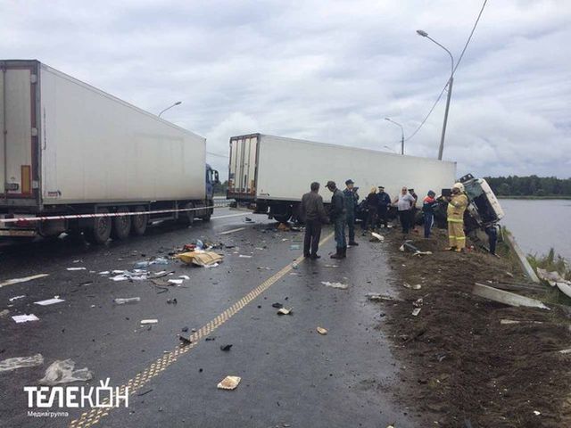 В итоге погибли водители обеих машин. Бензовоз рухнул в воду при попытке объехать место ДТП: он пробил ограждение и скатился в Московское море. Водитель не пострадал
