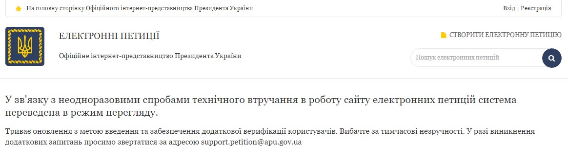 "В связи с неоднократными попытками технического вмешательства в работу сайта электронных петиций система переведена в режим просмотра", - объясняют на ресурсе.