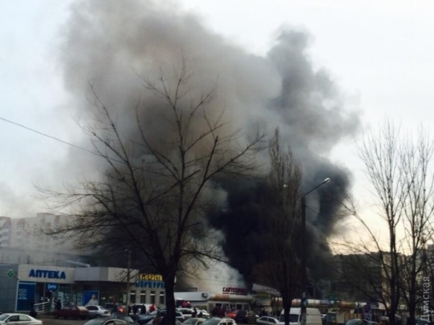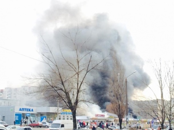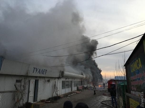 В субботу, 16 января, в Одессе на территории рынка "Меркурий" разбушевался огонь. Черный дым окутал близлежащие районы. Есть угроза, что пожар перейдет на торговый центр "Семья".